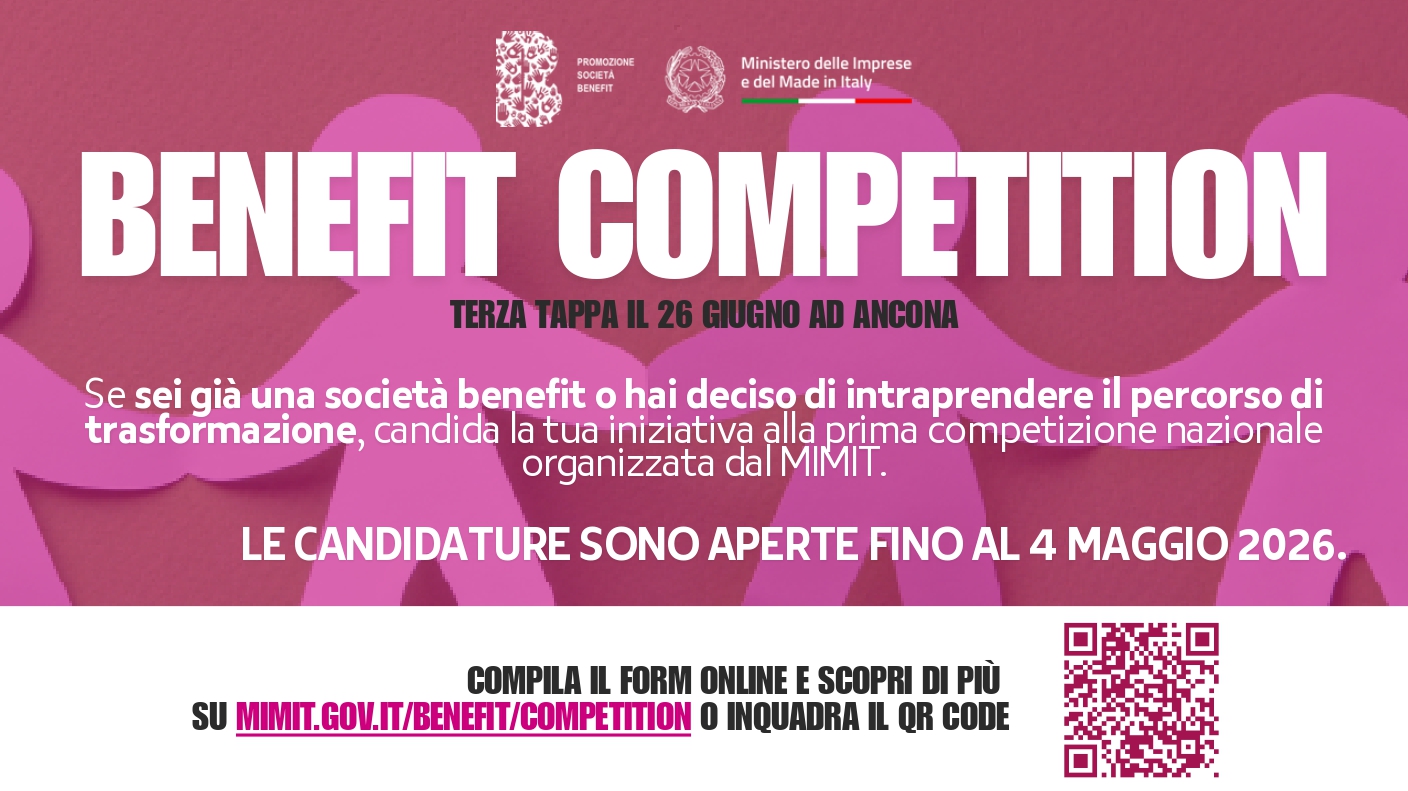 Se la tua impresa sta sviluppando iniziative in questa direzione, questo è il momento giusto per farsi avanti. Sono aperte le candidature per la prossima tappa della Benefit Competition, in programma il 26 giugno ad Ancona. Possono partecipare sia le imprese già costituite come Società Benefit sia quelle che non lo sono ancora, purché presentino progetti e iniziative coerenti con le tematiche di beneficio comune.